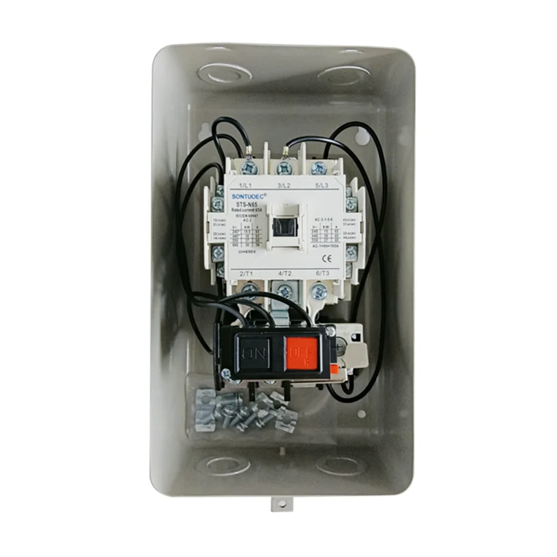 Motor Motor Starter-ek motorraren paraleloan konektatutako kontaktuak ixten ditu motorrarekin kontaktu magnetiko baten bidez, motor hasiera eta kontrol kontrolatzeko. Aldi berean, gainkargaren babesaren funtzioa ere badu, motorra gainkargatzen denean automatikoki zirkuitua moztu dezake motorra kalteetatik babesteko.