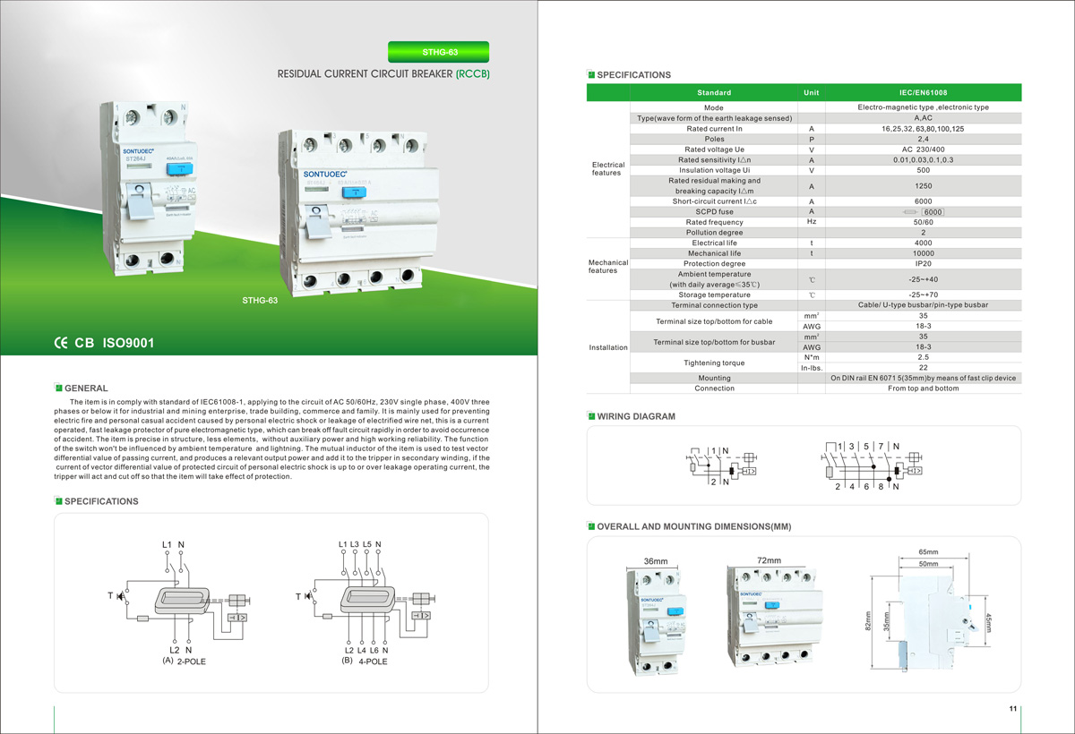 SONTUOEC hainbat etxetresna elektriko txikien ekoizpenean espezializatutako hornitzaile/fabrikatzaile txinatar bat da. ST264J AC50 / 60HZ bi polo 230V, lau polo 400V, 63A arteko korronte nominala erabiltzen da. Norbaitek deskarga elektriko edo ihesaren gainetik dagoen korrontearen gainetik automatikoki eta berehala moztu dezake. Segurtasun pertsonala modu eraginkorrean babestu dezake eta ekipoetan kalteak saihestu ditzake. Hondar-korrontearen etengailuak gainkarga eta zirkuitu laburren babes gisa ere funtziona dezake eta egoera normalean linea aldatzea maiz. Produktua egokia da industriarako, negozioetarako, eraikinetarako, egoitzarako, etab. IEC61008-1 estandarrekin bat dator.