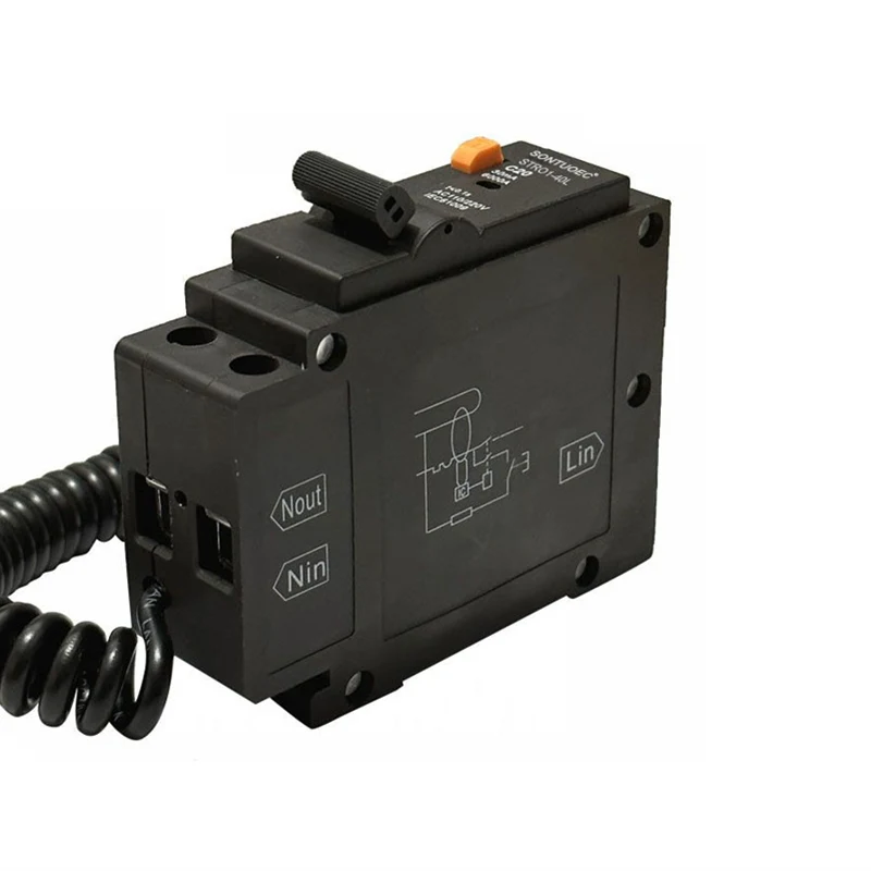 Entxufatu rcbo 1p + n, i.e. uneko egungo zirkuituan. Gainkarga eta zirkuitu laburreko babesa ez ezik, ihesaren babesaren funtzioa ere badu, eta horrek lurreko lerroan ihesaren korrontea antzeman eta moztu dezake eta, beraz, ekipamendu elektrikoen eta segurtasun pertsonalaren funtzionamendu normala bermatuz.