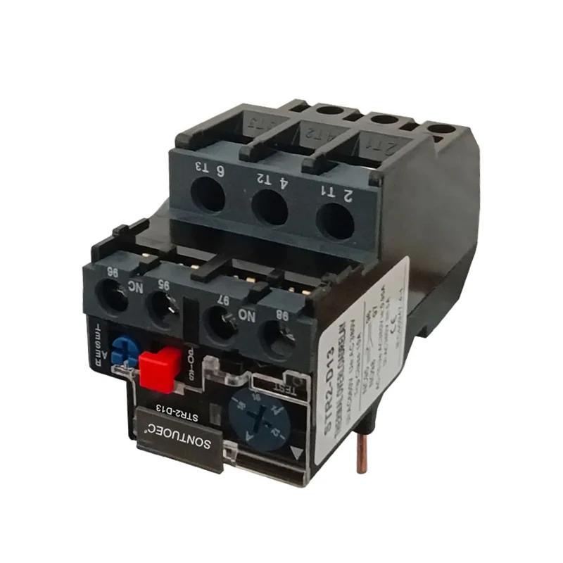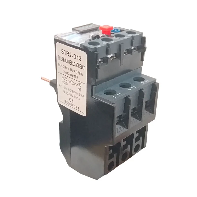 STR2-D13 errelebo termikoa elementu termikoak sortutako beroaren bidez erabiltzea da, beraz, deformazioa deformazio bimetalikoa hedatzeko koefiziente desberdinak egon daitezen, deformazioa distantzia jakin batera iristen denean, kontrol-zirkuitua deskonektatzeko, motorraren gainkarga ez daitezen. Str2-D13 errelebo termikoen gainkarga babes-elementu gisa tamaina txikiko eta kostu baxuaren abantailak ditu.