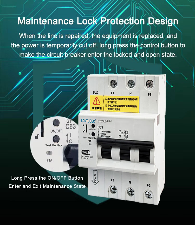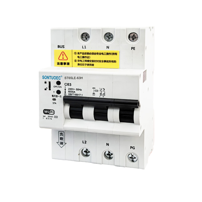 WiFi 4G Tuya ST65LE-63h serie hau RCBO Zirkuitu Integraleko Zirkuitu Integraleko apurtzailea oso erabilia daiteke etxeetan, lantegietan, Fabrikak, Farmland, Farmland, Muyal Works-ek eta uretako ponpa, ur berogailua, lurzoru berogailuaren ekuntzak eta abar erabil ditzakete.